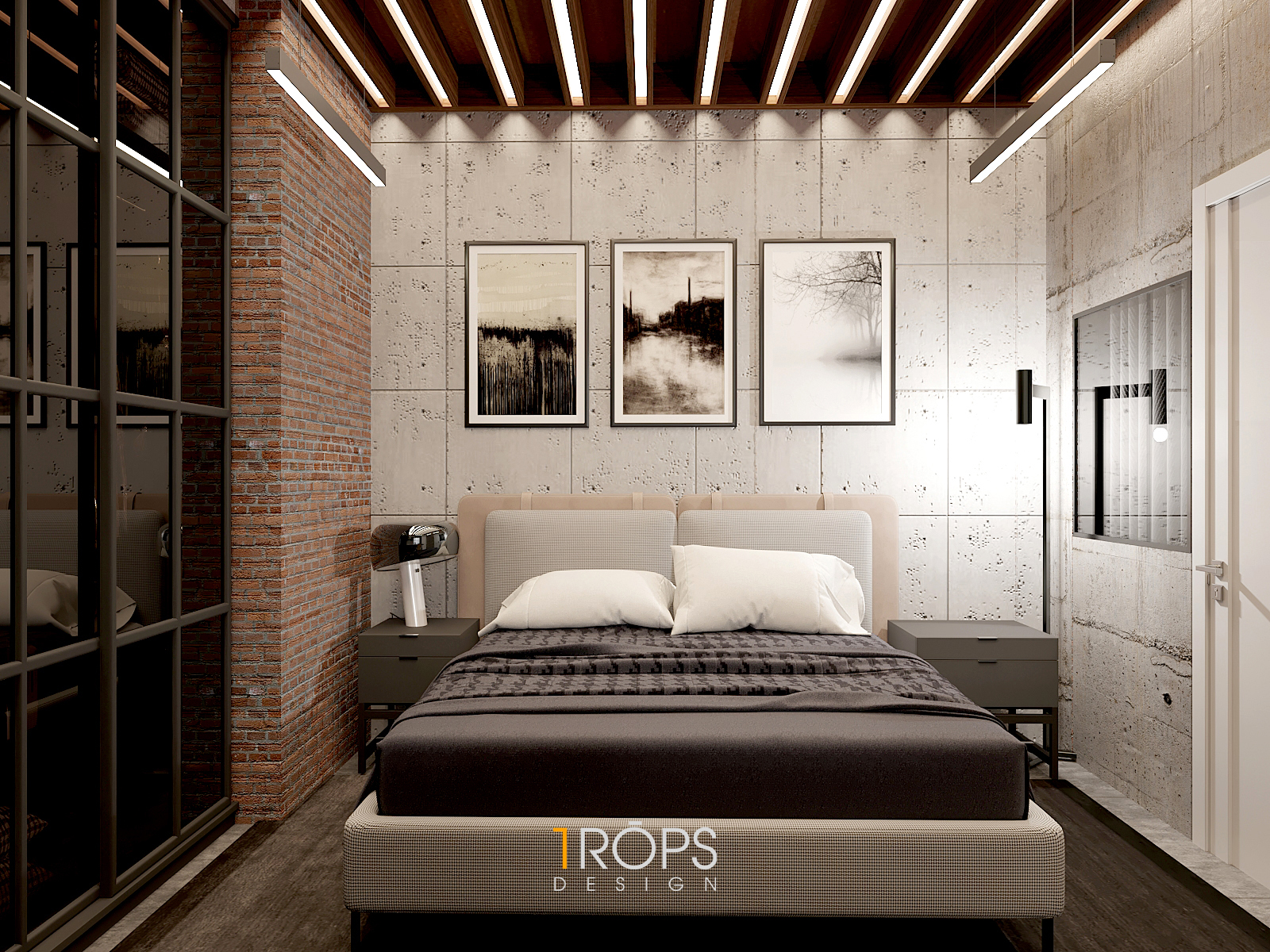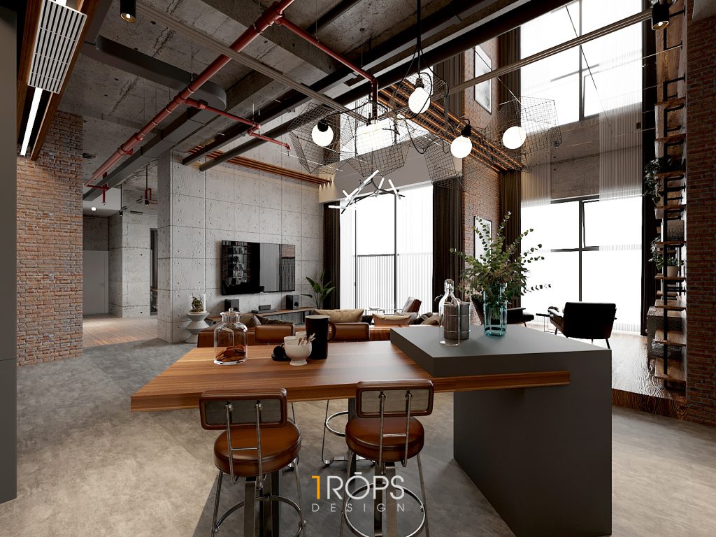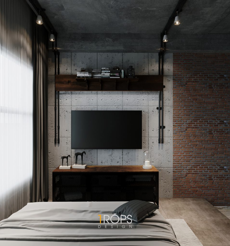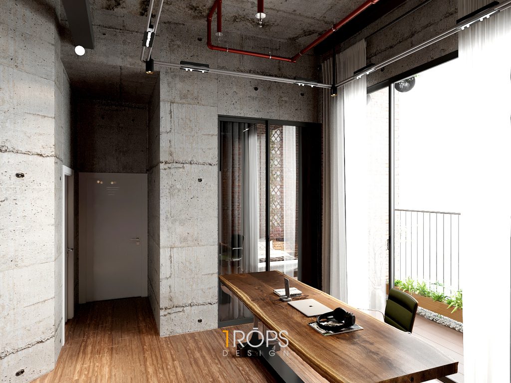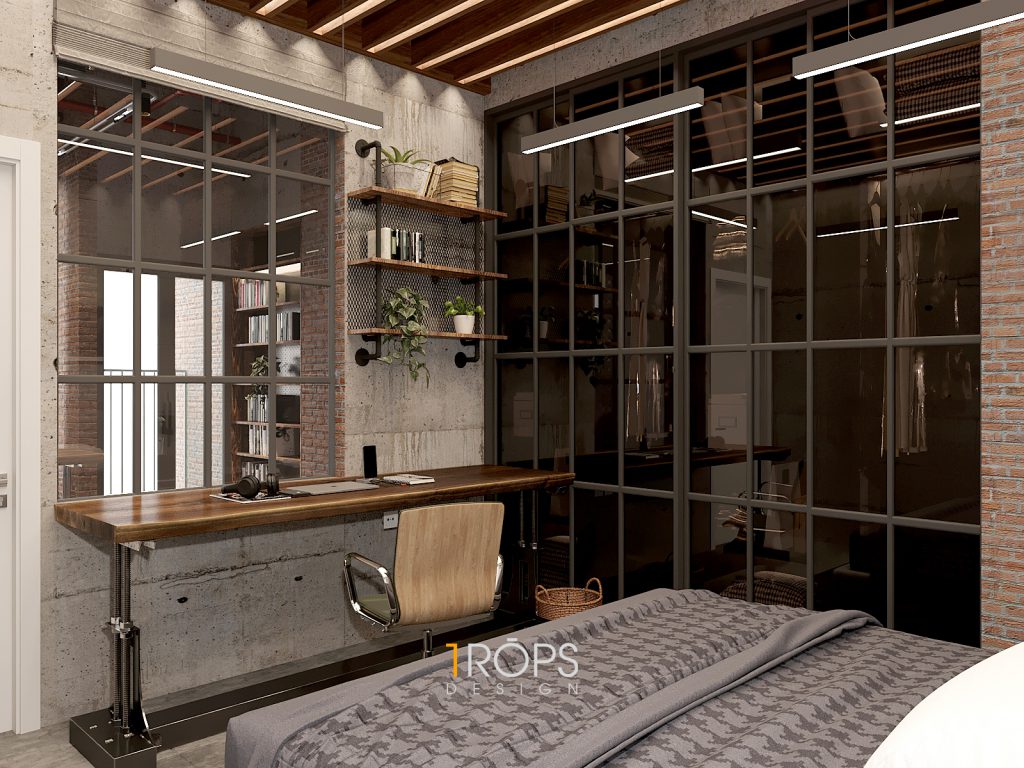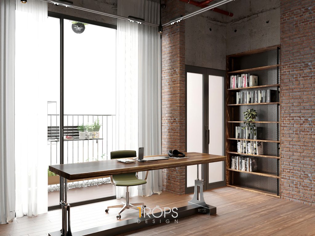 Thấu hiểu ý tưởng, Tropicons đã lên cho gia chủ một thiết kế hoàn hảo, phòng làm việc và phòng ngủ với những chi tiết vật liệu thô cứng nhưng lại toát lên sự mạnh mẽ.