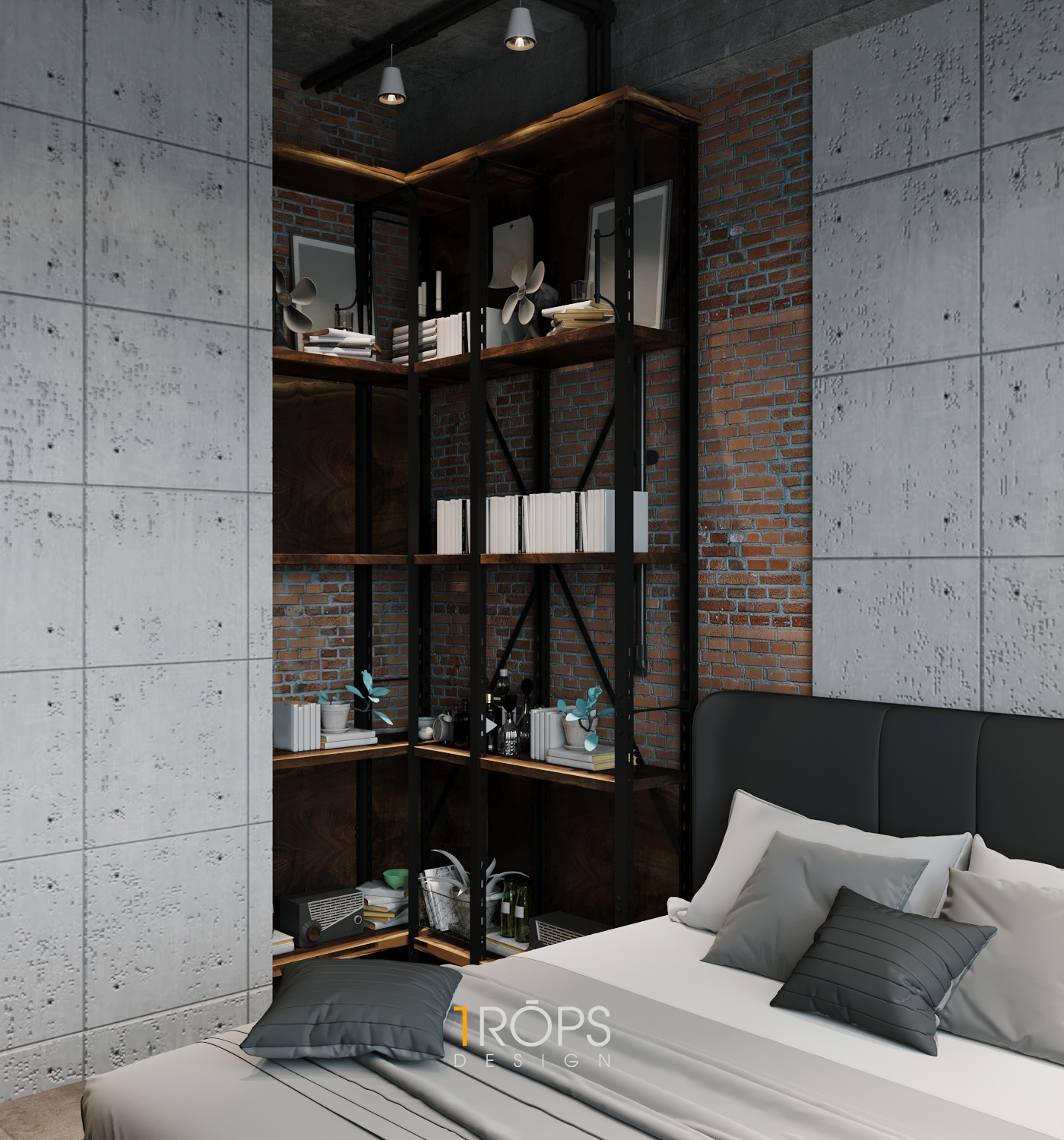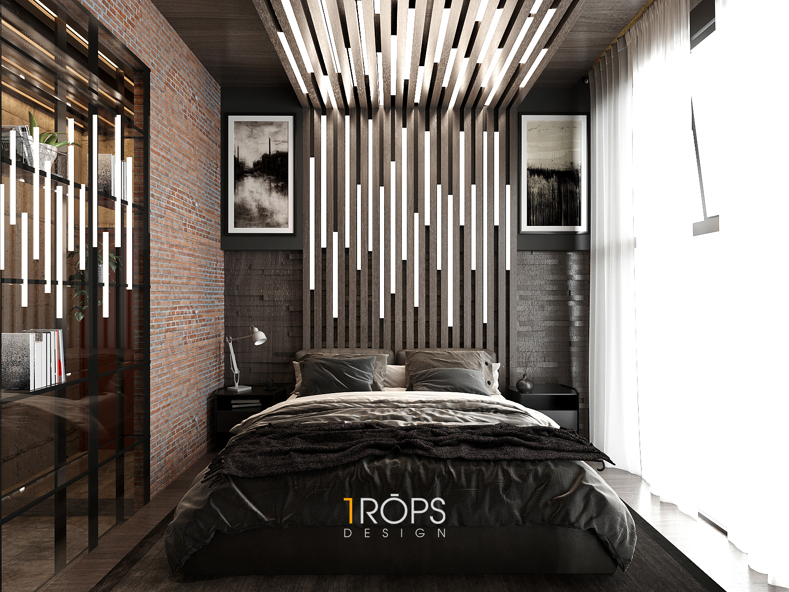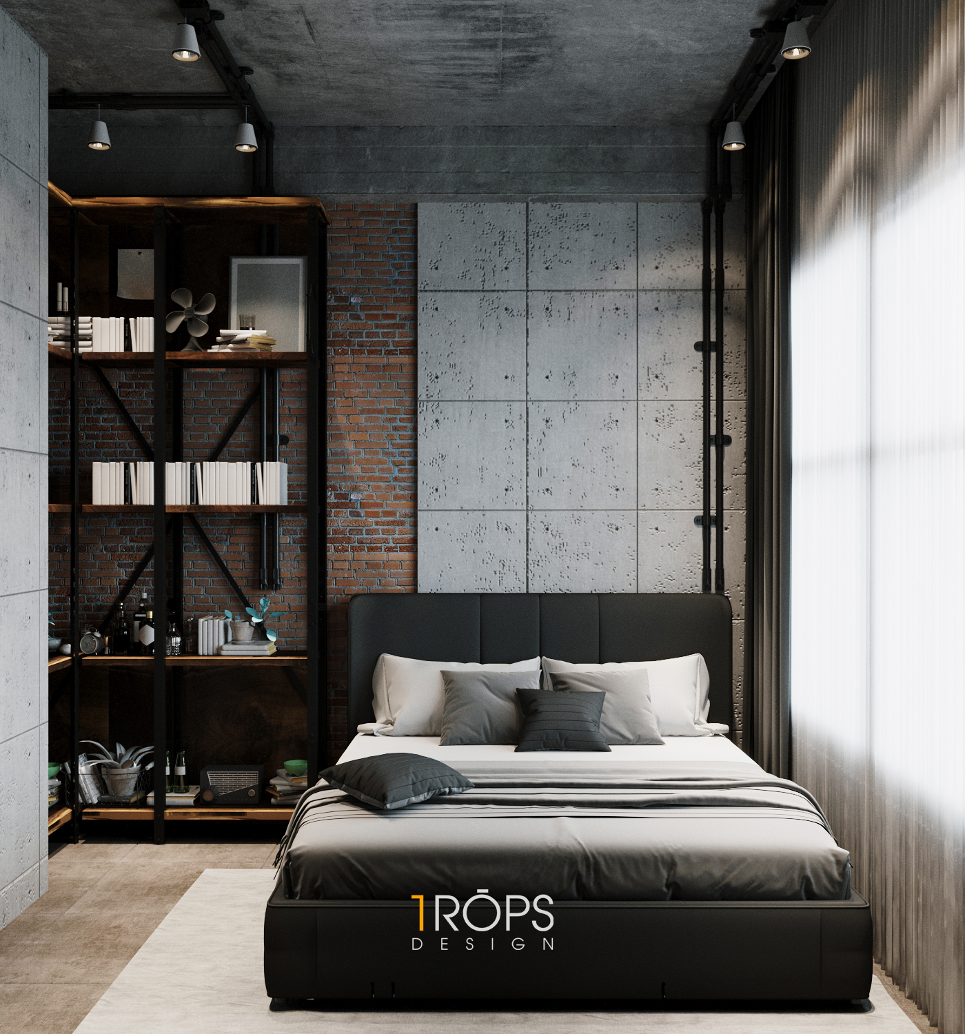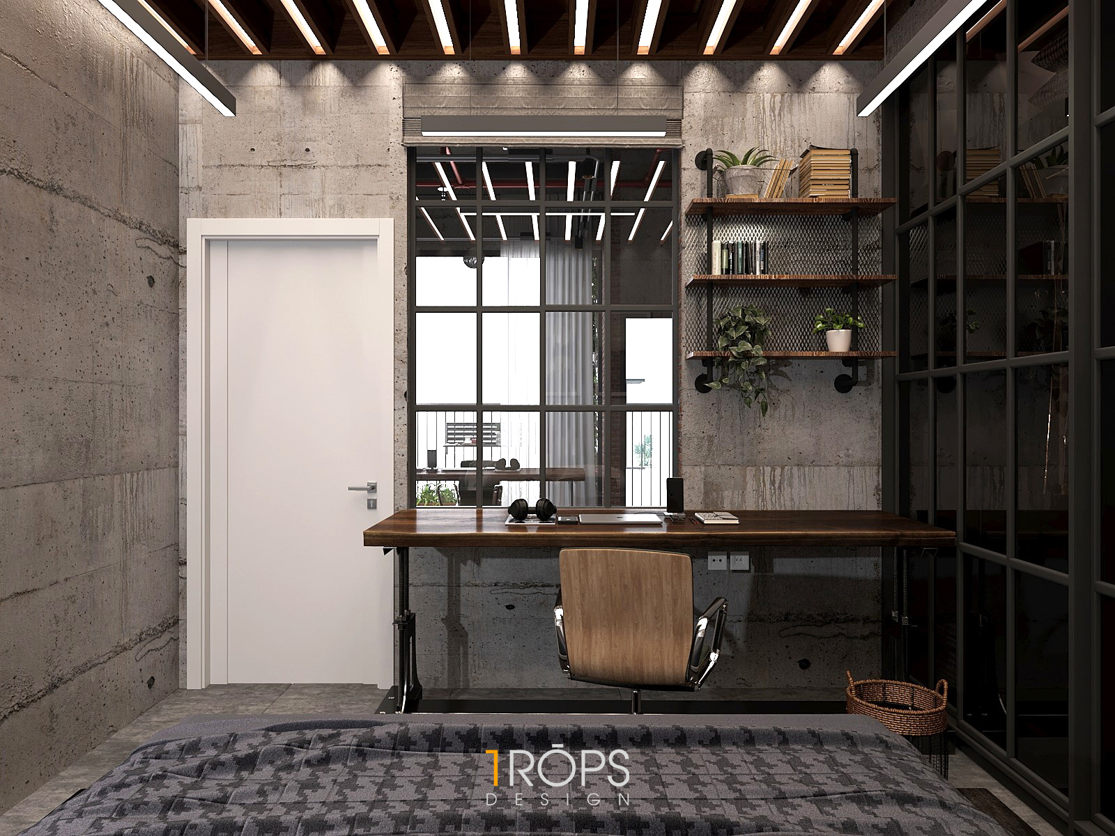Thấu hiểu ý tưởng, Tropicons đã lên cho gia chủ một thiết kế hoàn hảo, phòng làm việc và phòng ngủ với những chi tiết vật liệu thô cứng nhưng lại toát lên sự mạnh mẽ.