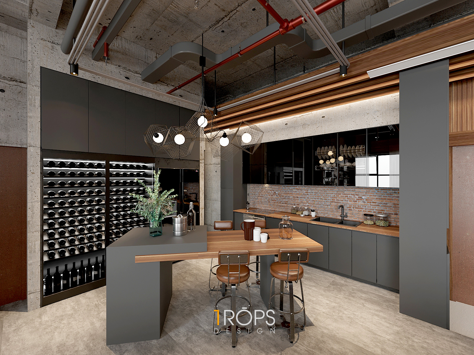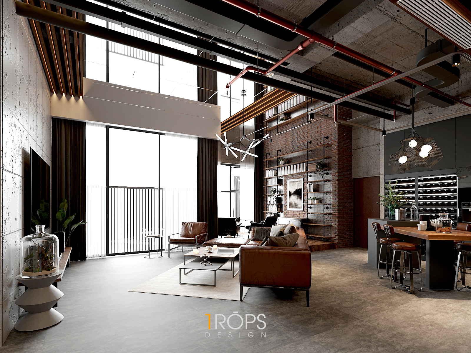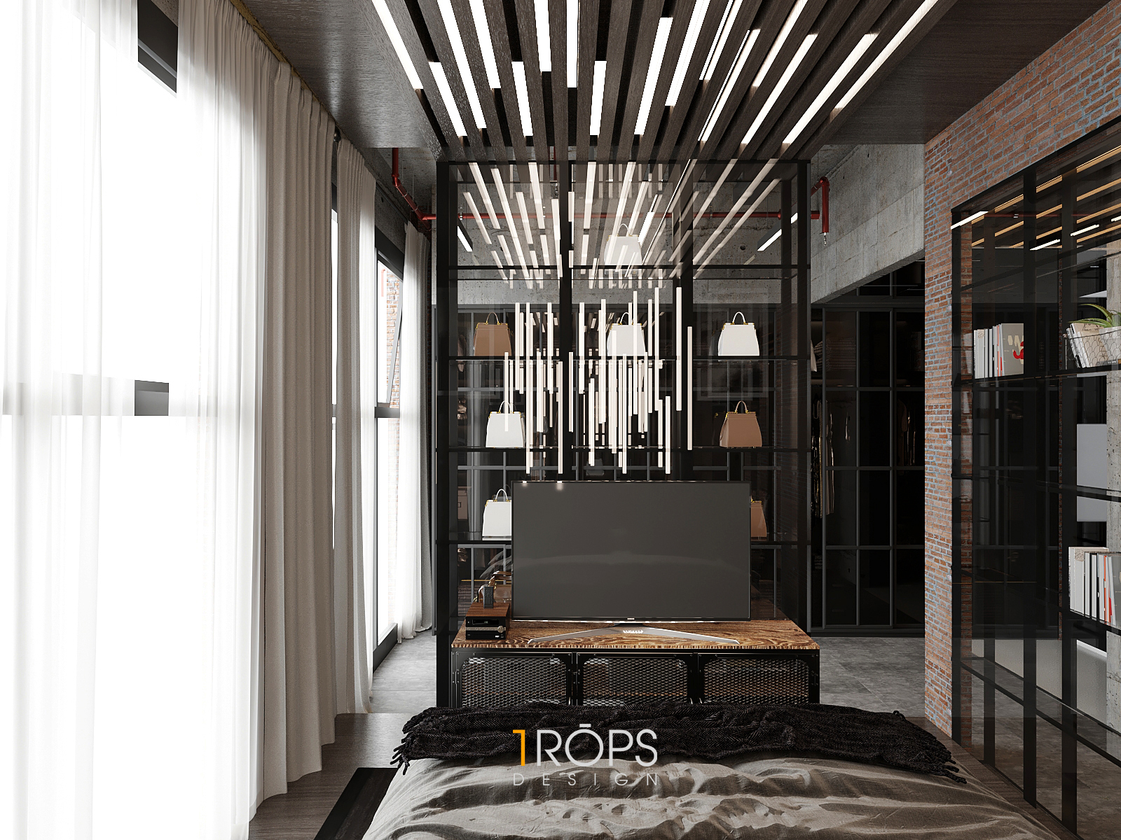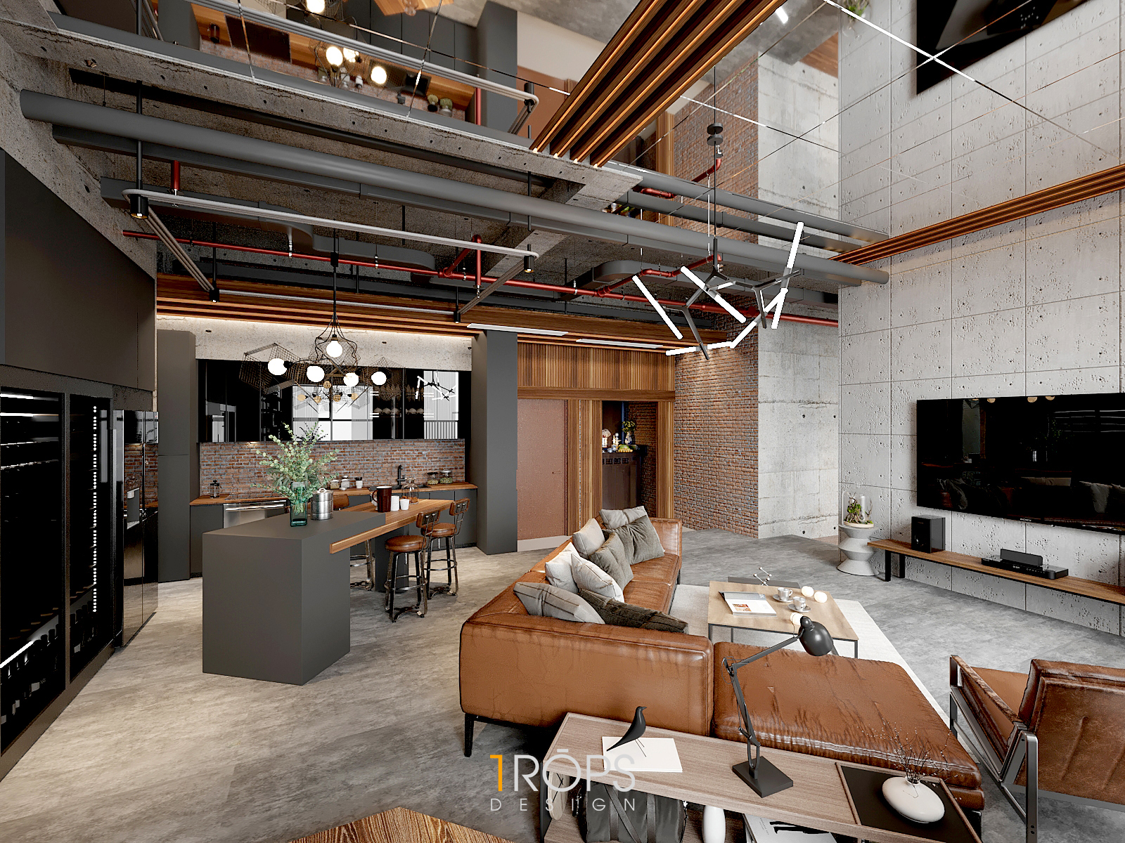 Thấu hiểu ý tưởng, Tropicons đã lên cho gia chủ một thiết kế hoàn hảo, phòng làm việc và phòng ngủ với những chi tiết vật liệu thô cứng nhưng lại toát lên sự mạnh mẽ.