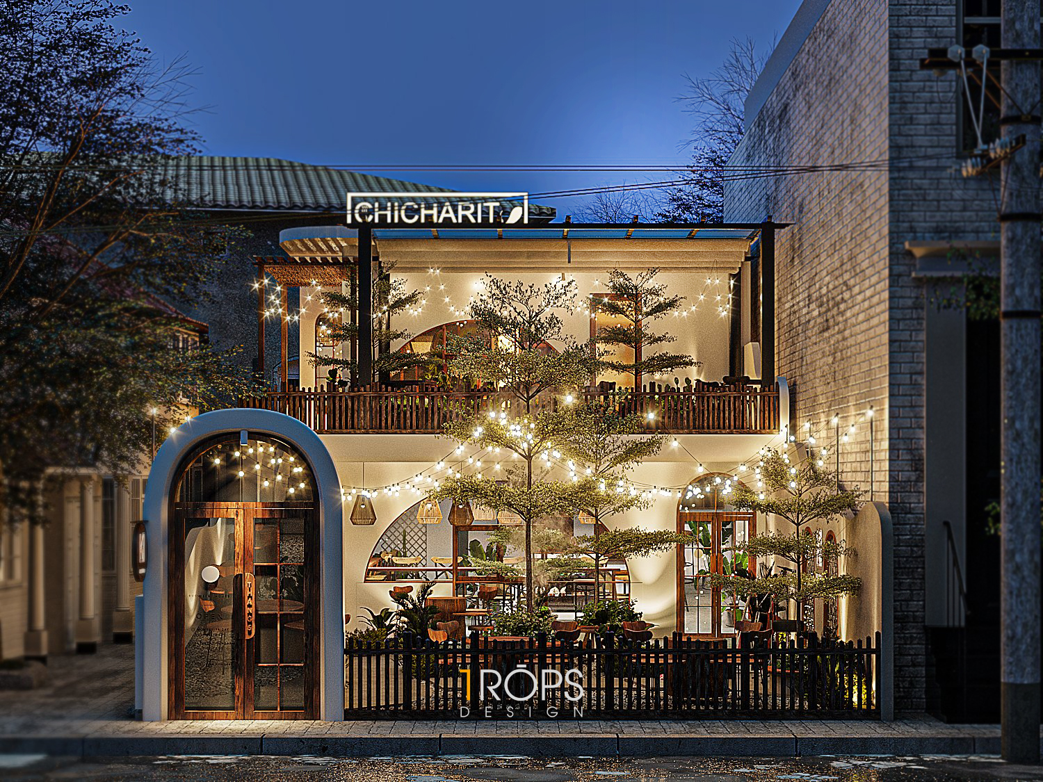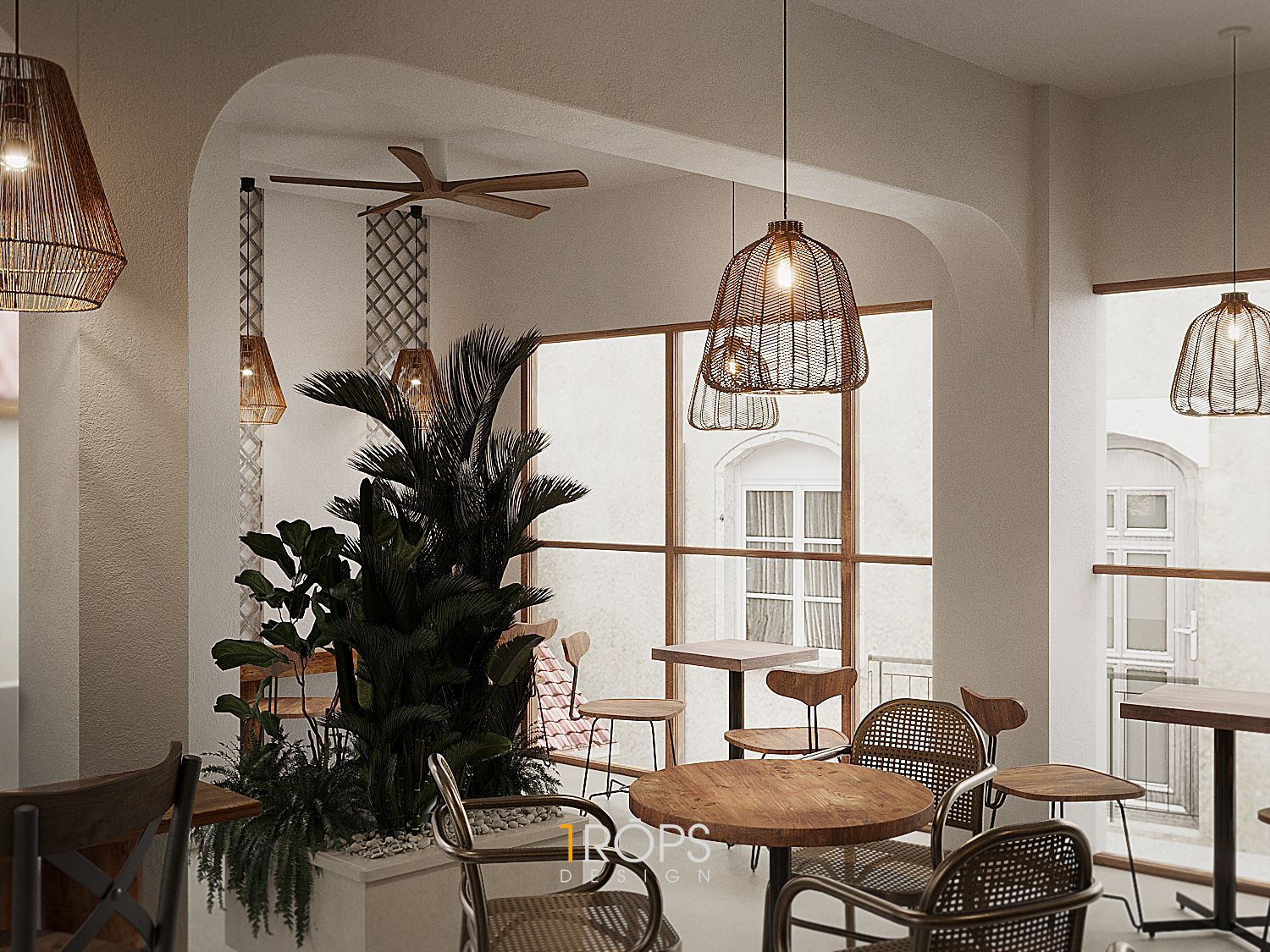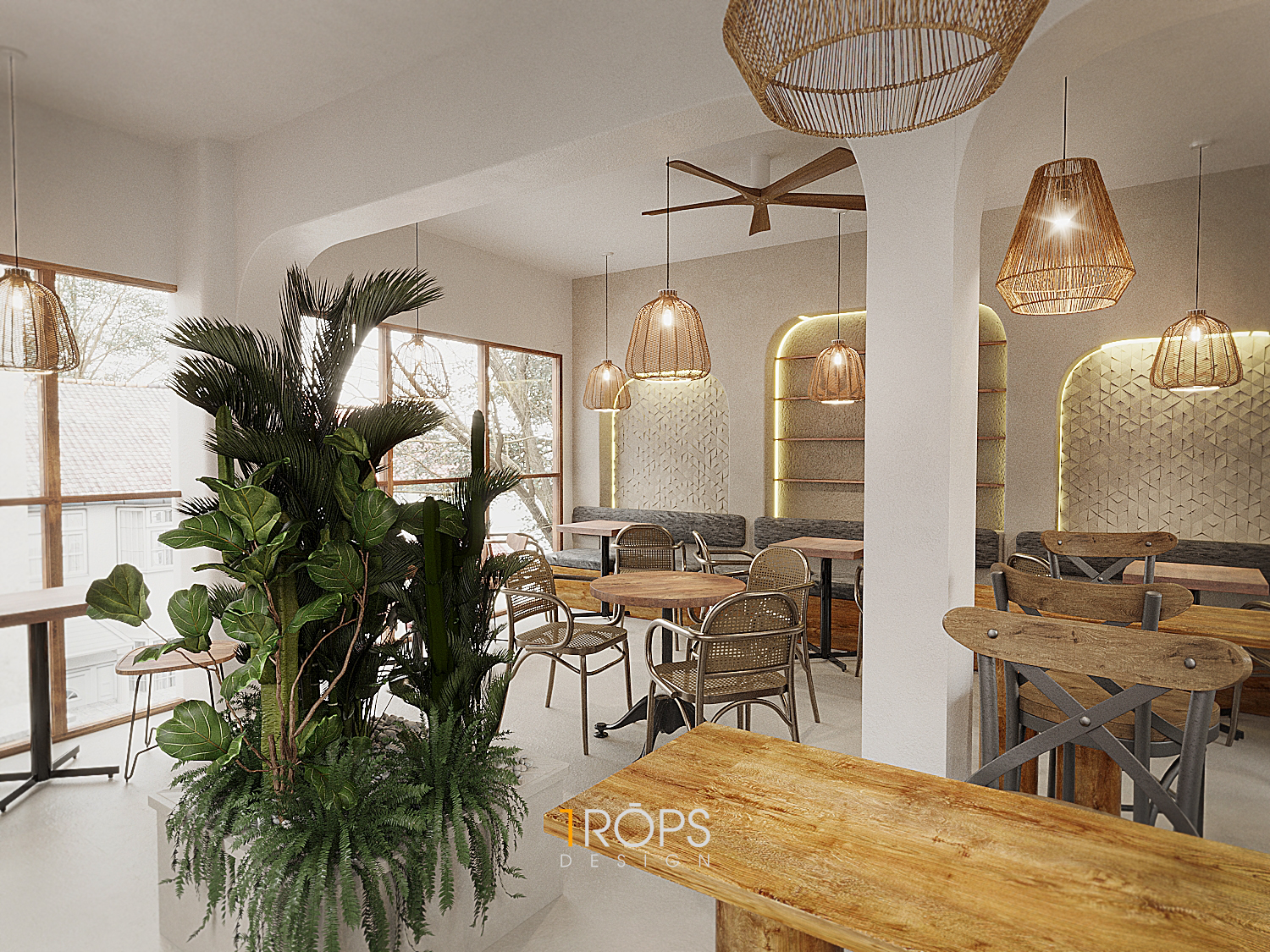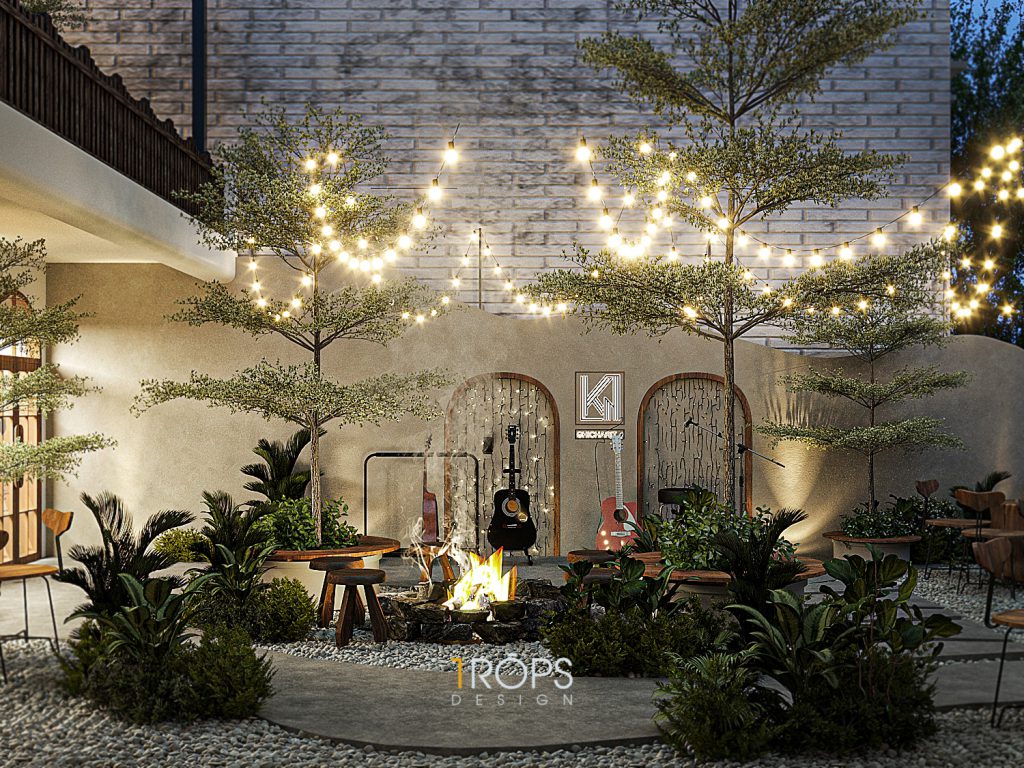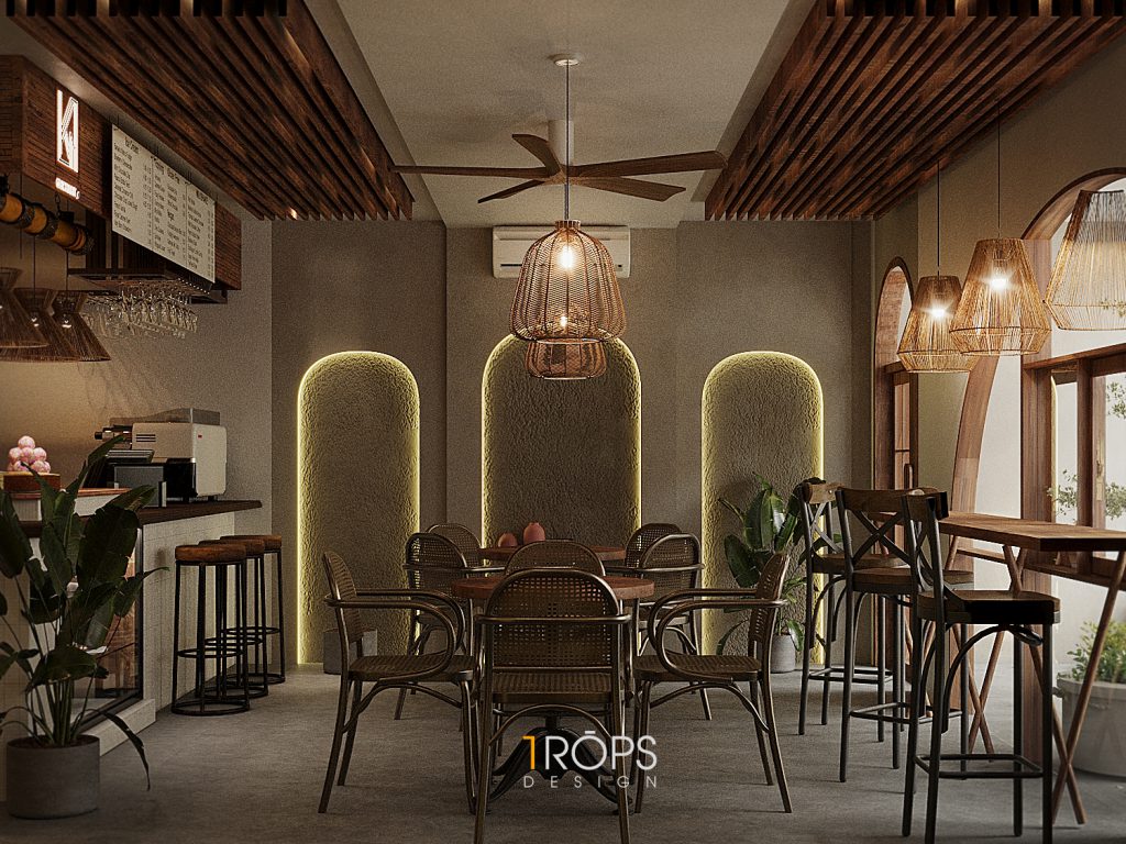 Tuy rằng diện tích của cả công trình không quá rộng, nhưng việc bố trí và phân chia không gian hợp lý vẫn đủ để tạo cảm giác thoáng đãng. Phối kết hợp vật liệu và ánh sáng tạo cho quán một vẻ cuốn hút dù cho là ban đêm hay ban ngày!