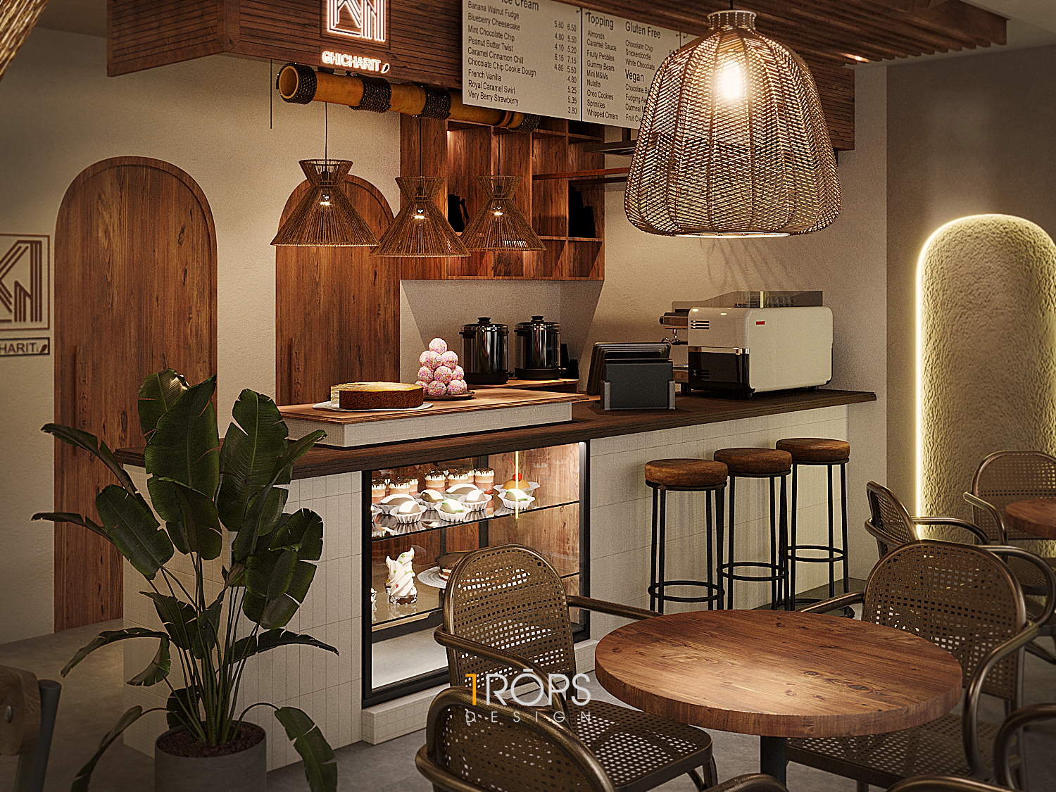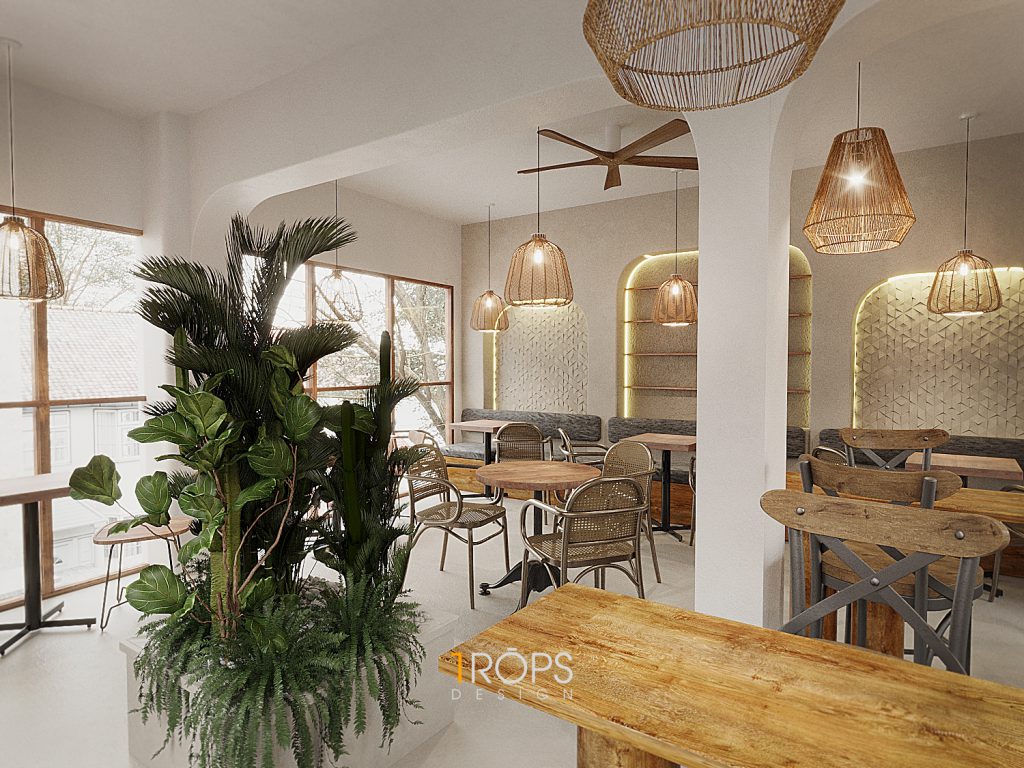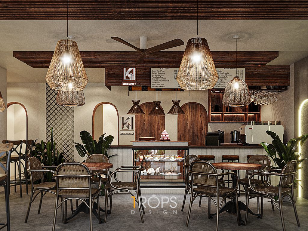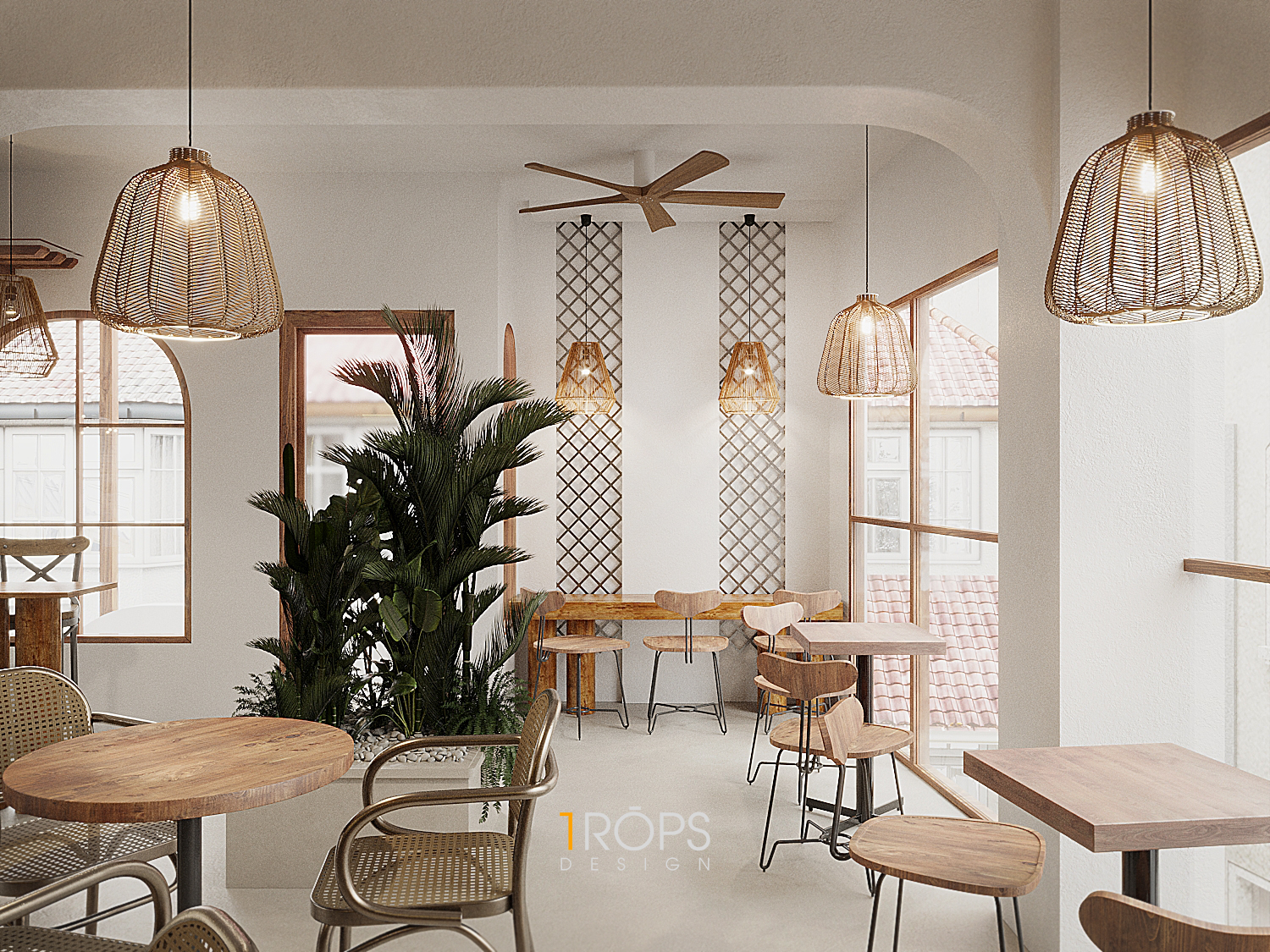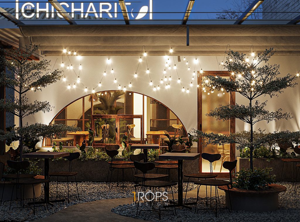 Tuy rằng diện tích của cả công trình không quá rộng, nhưng việc bố trí và phân chia không gian hợp lý vẫn đủ để tạo cảm giác thoáng đãng. Phối kết hợp vật liệu và ánh sáng tạo cho quán một vẻ cuốn hút dù cho là ban đêm hay ban ngày!