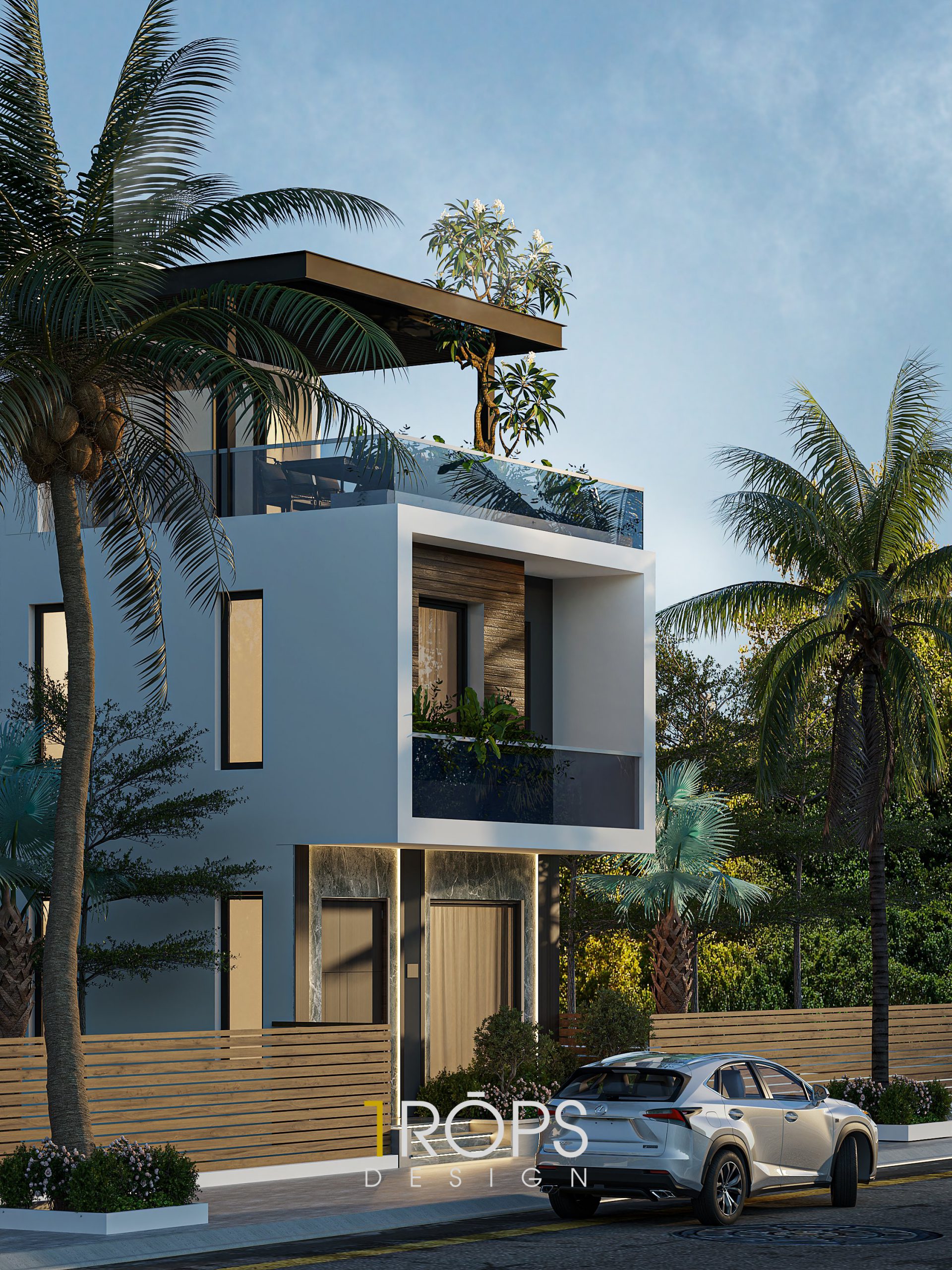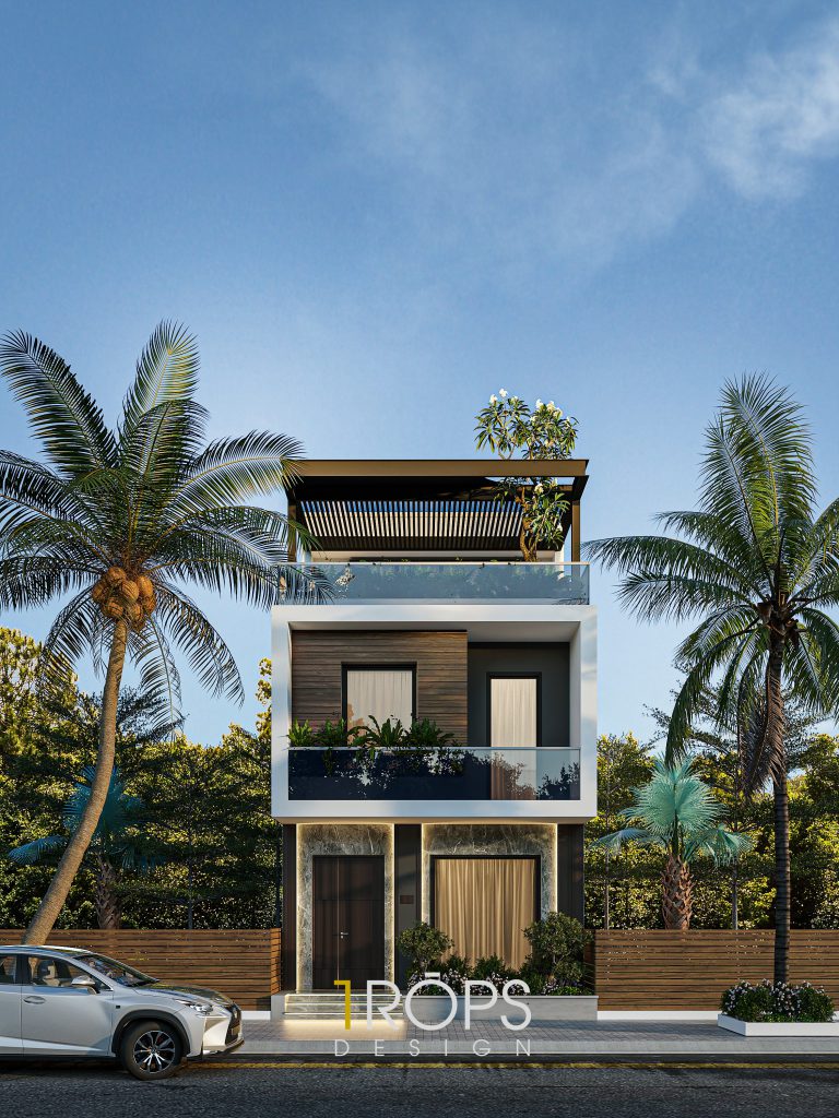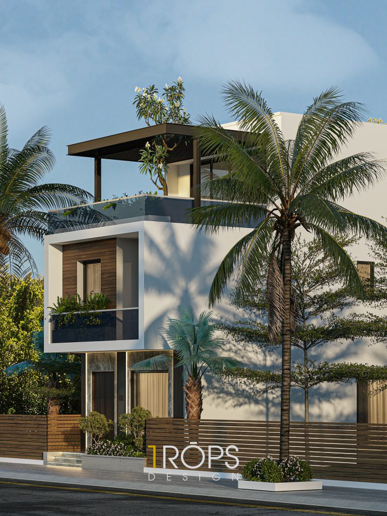 Sử dụng những vật liệu đơn giản như bê tông, kính, gỗ. Kết hợp cùng những đường nét hình khối mạch lạc tạo cho công trình một vẽ ngoài hiện đại