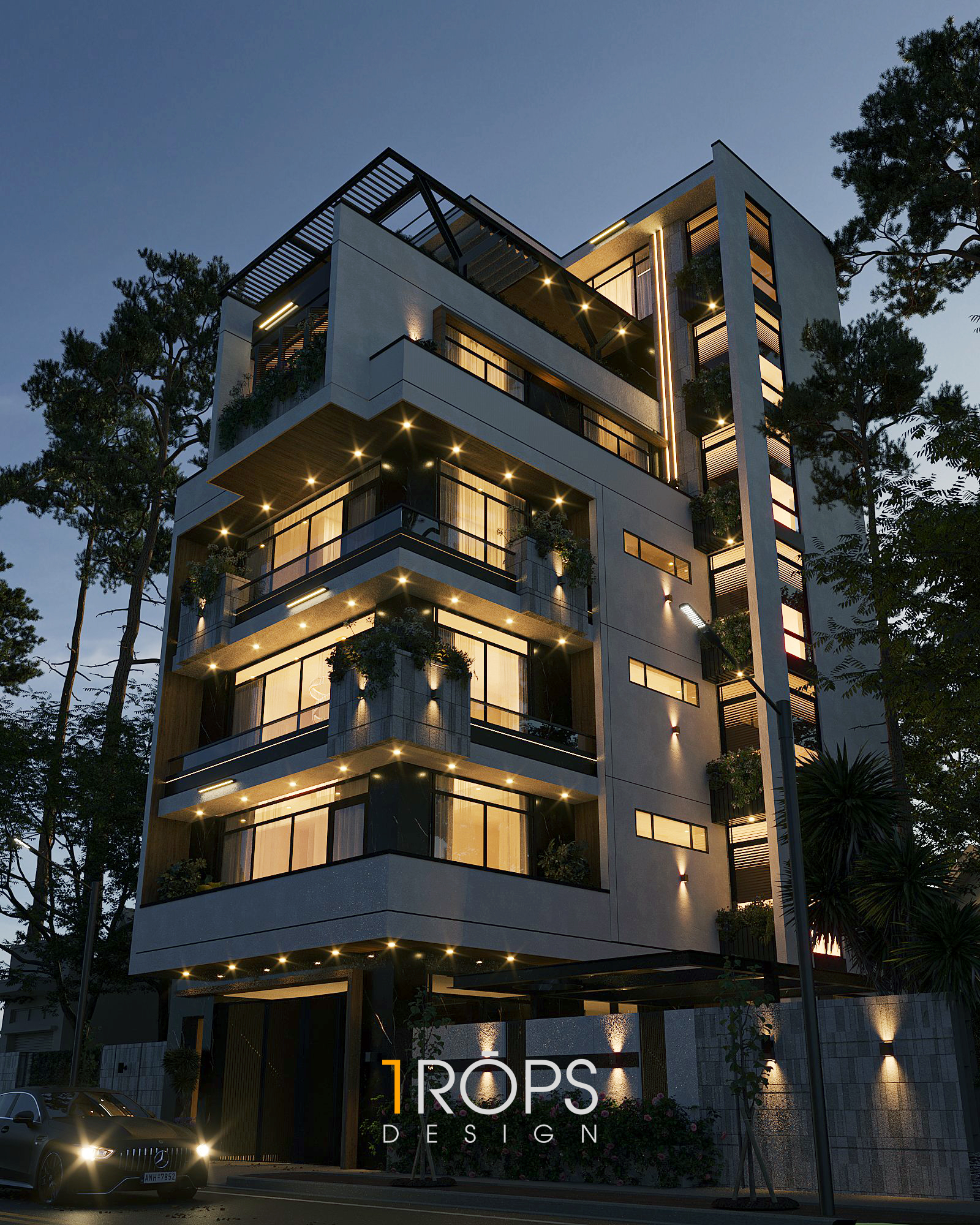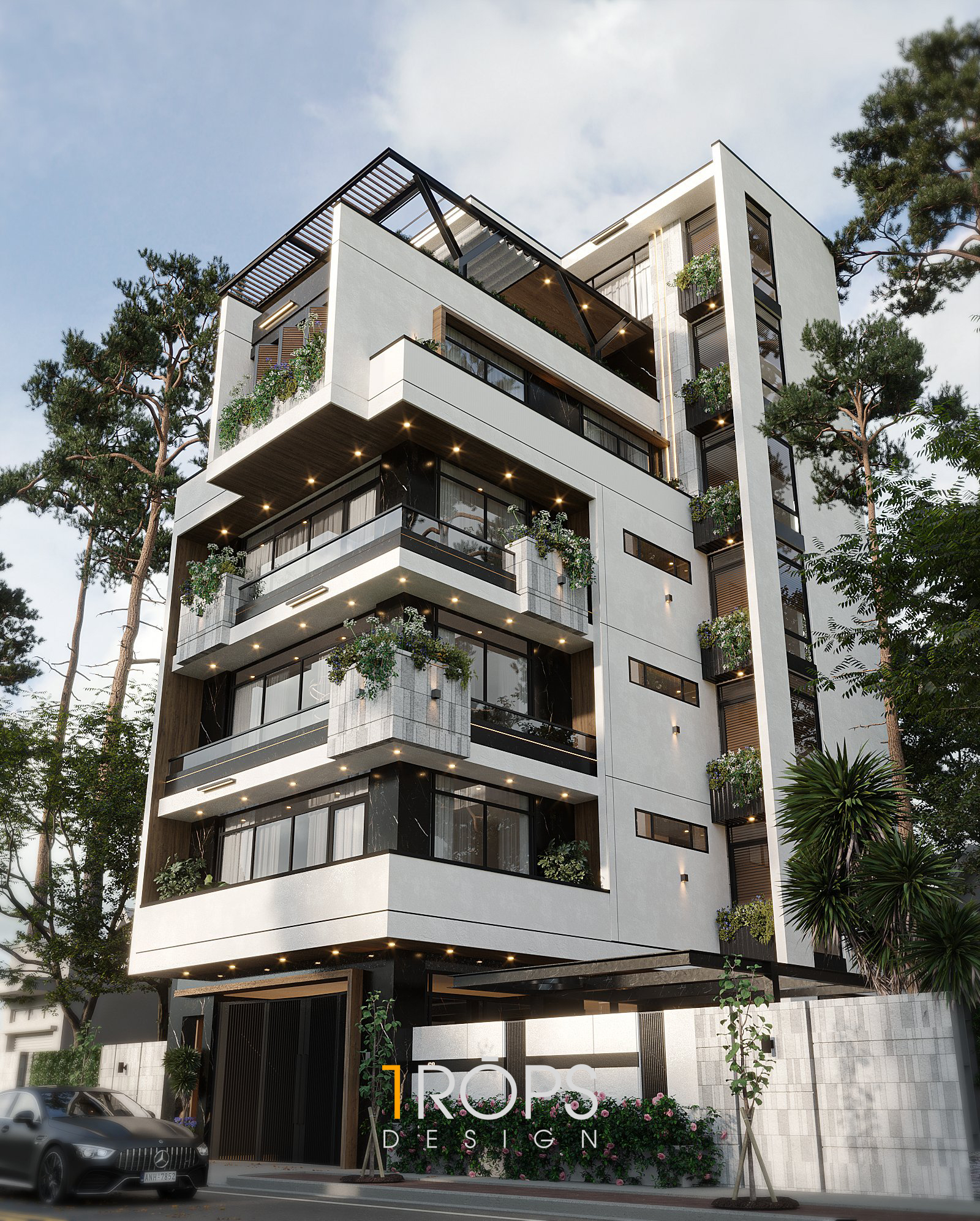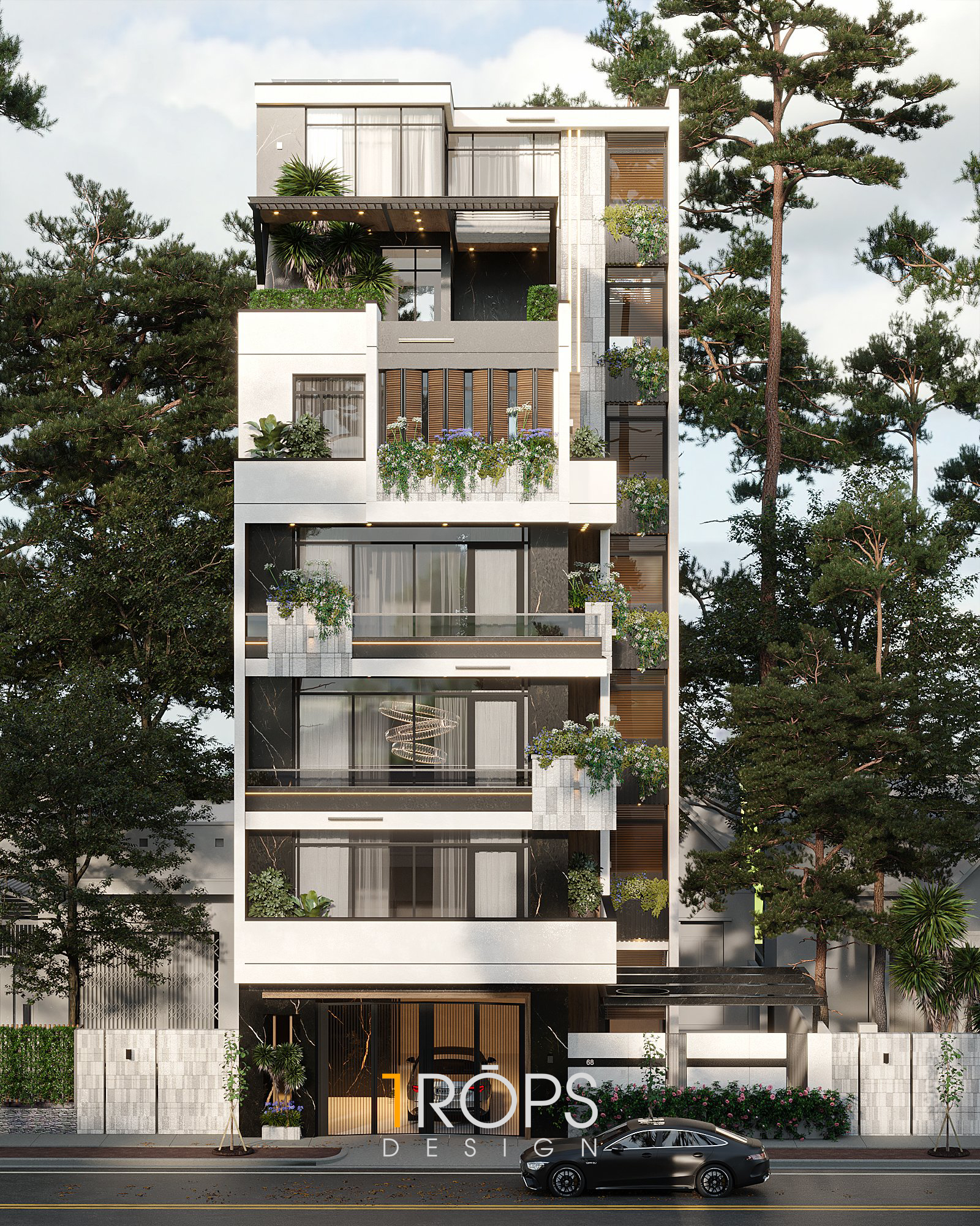 Công trình được đội ngũ kiến trúc sư của Trops thực hiện bằng niềm đam mê bất tận với những đường nét kiến trúc hiện đại và phóng khoáng
